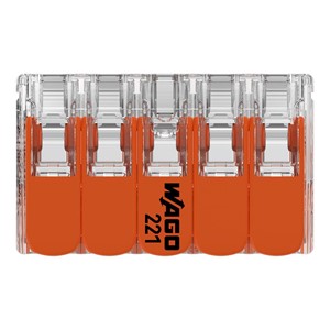 WAGO's 221 Series Splicing Connector with levers impresses with its innovative design for different conductor cross-sections. That’s why WAGO's lever-equipped splicing connector holds a unique trademark within electrical interconnection technology. The flat levers, which fit seamlessly into the 221’s base, act like a cast when closed and can be positioned neatly in any housing without disturbing edges. Due to the wide design of each leaver, they can all be operated perfectly without tools for convenient conductor terminations. The transparent housing displays robust technology and enables immediate visual inspection for the correct contact of solid, stranded and fine-stranded conductors. Resembling piano keys, the levers' design perfectly combines the functional and aesthetic connection technology "Made by WAGO." This product is designed for specific Ex applications (please refer to the product datasheet).