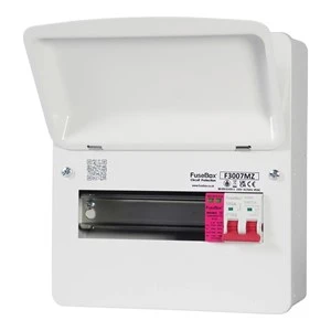 FUSEBOX F3007MZ 7WAY CONSUMER UNIT WITH SPDCurrent Rating : 100AEAN : 5060523526819Manufacturer Part Code : F3007MZNumber of Modules : 10 ModuleNumber of Ways : 7 Way